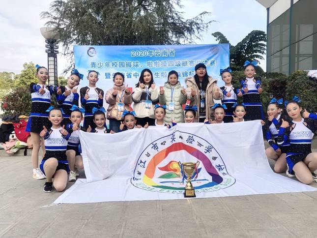 麗江市實驗學校組織的啦啦操隊在大賽中獲得了總決賽二等獎、云南省中小學生錦標賽第六名的好成績!
