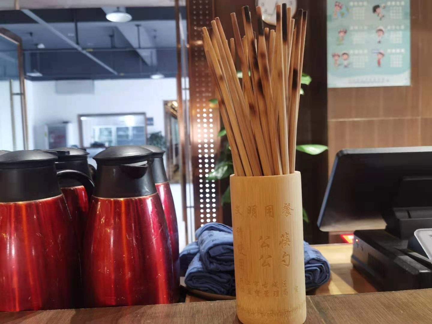 在祥和商業(yè)廣場(chǎng)的一家火鍋店,該店的工作人員告訴記者,自疫情發(fā)生以來(lái),他們店內(nèi)的每一張餐桌都配備了公筷和公勺。店內(nèi)也隨處可見(jiàn)使用公筷公勺的文明標(biāo)語(yǔ)。火鍋店店長(zhǎng)林巧東告訴記者:進(jìn)店客大部分都在自覺(jué)使用公筷公勺,公筷公勺的使用率大幅度提高。服務(wù)員給顧客上菜時(shí),會(huì)在每道菜上擺放一雙公筷。顧客就餐前口頭提醒顧客使用公筷。