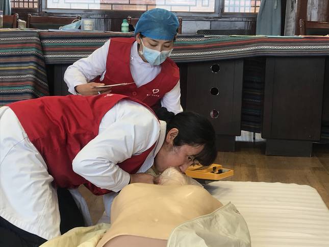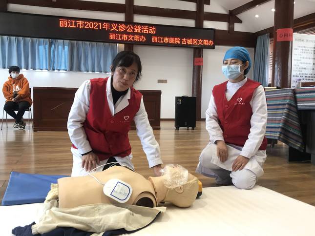 今天下午,麗江市人民醫(yī)院的醫(yī)生護士們來到麗江古城義尚社區(qū)開展志愿服務(wù)活動。本次活動分為自救互救知識與技能培訓(xùn)和義診兩部分。