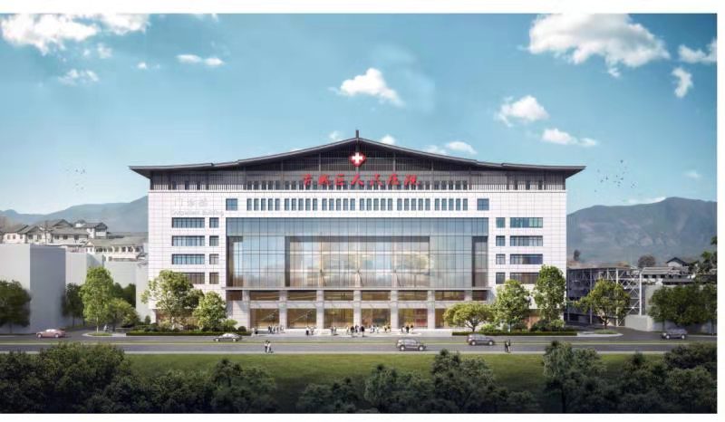 新建一期(門診醫(yī)技樓)和二期(住院樓),2幢樓呈“L”字形平面結(jié)合??偨ㄖ娣e35299.40平方米,同時配套立體停車場2880平方米,停車位237個(地面機械停車泊位150個,地下停車泊位85個,救護車專用車位2個),新建病房350床,預(yù)計今年10月投入使用。