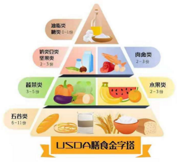 可以參考健康飲食的金字塔,葷素搭配,保證一日多餐的營(yíng)養(yǎng)攝入。