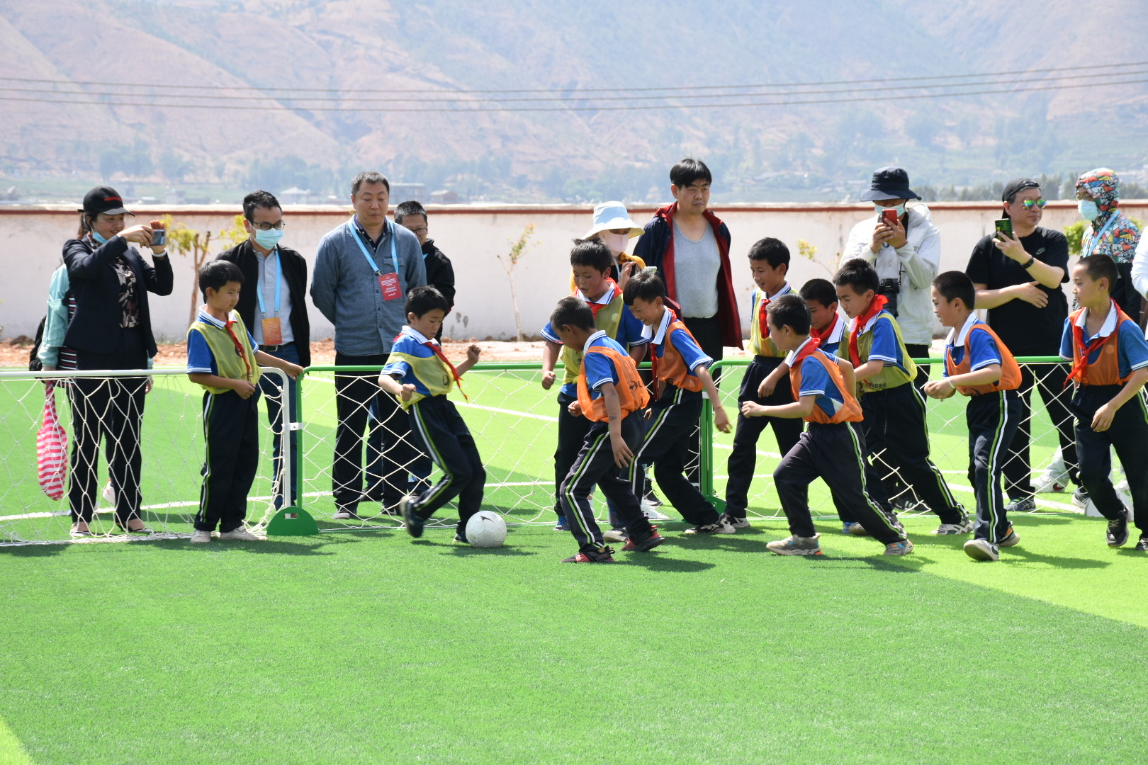 揭牌儀式后,中國(guó)足球發(fā)展基金會(huì)組織在程海鎮(zhèn)寄宿制小學(xué)陽(yáng)光球場(chǎng)開展了少兒圍欄足球示范課。少兒圍欄項(xiàng)目設(shè)計(jì)者、著名足球評(píng)論員張路進(jìn)行現(xiàn)場(chǎng)解說(shuō)。伴隨著張路的精彩點(diǎn)評(píng),孩子們?cè)趪鷻谥心銧?zhēng)我搶,快樂追逐,現(xiàn)場(chǎng)爆發(fā)出一陣陣歡笑和掌聲。