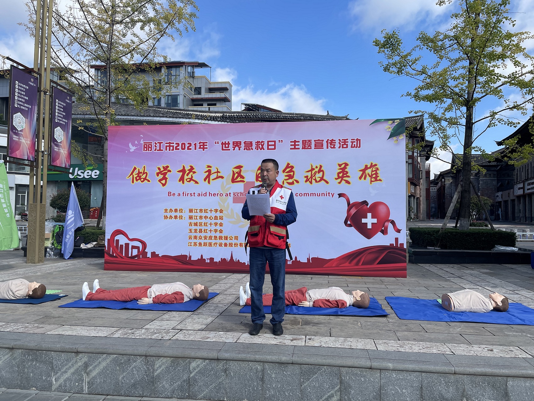 本次宣傳活動主題為“做學(xué)校社區(qū)的急救英雄”,由麗江市紅十字會主辦,麗江市中心血站、區(qū)縣紅十字會、部分企事業(yè)單位及志愿服務(wù)隊共同參與。