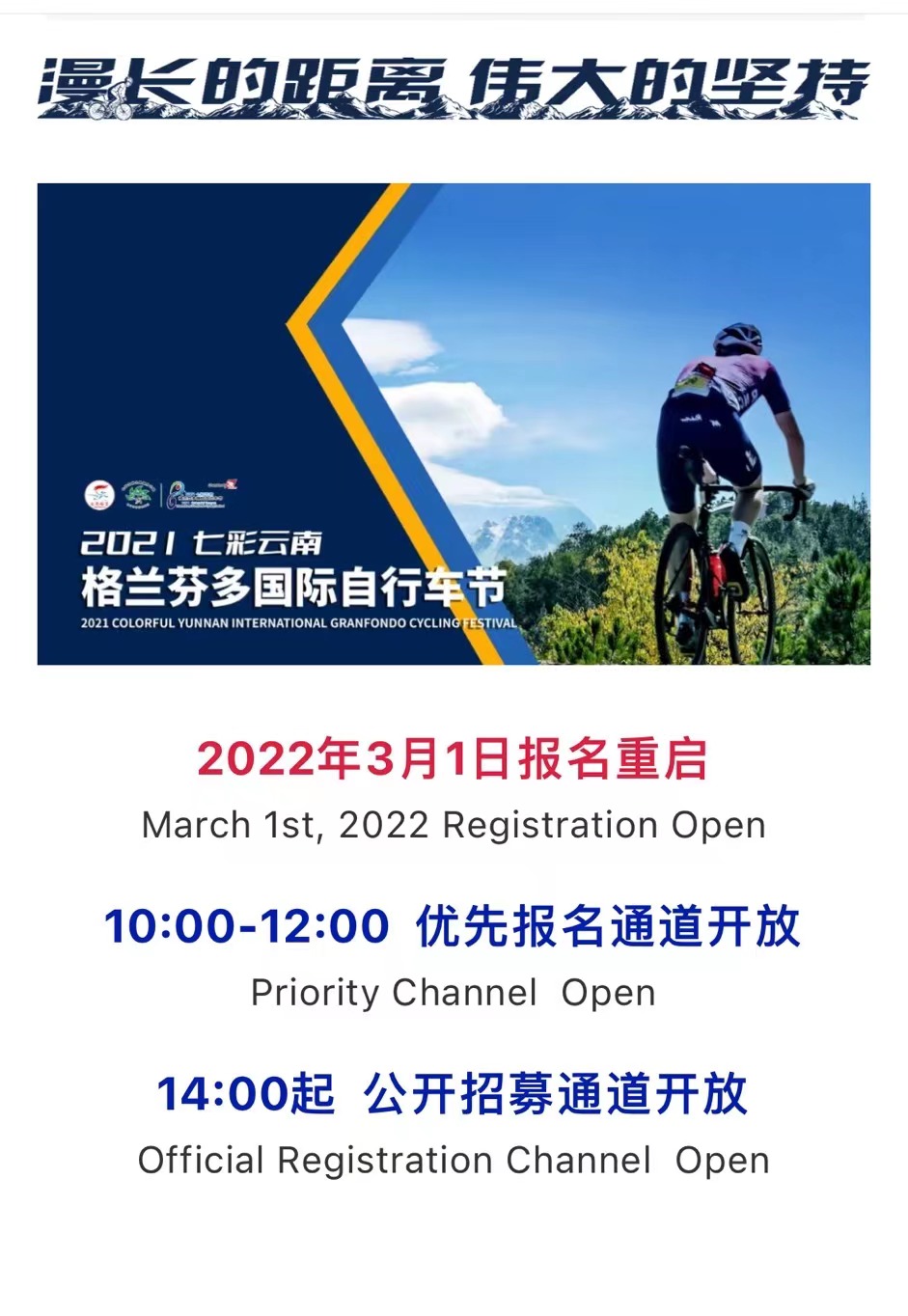 2021七彩云南格蘭芬多國際自行車節(jié)在開賽前因疫情影響延期。2022年2月25日,賽事官方宣布,在已經(jīng)完成各項籌備工作的情況下,2022年3月28日至4月2日將重啟舉辦第八屆七彩云南格蘭芬多國際自行車節(jié),賽事名稱仍將沿用“2021七彩云南格蘭芬多國際自行車節(jié)”。這也是格蘭芬多進入中國以來,首次選擇在3月拉開大幕。今天10點,格蘭芬多國際自行車節(jié)賽事官方也重啟了報名通道。