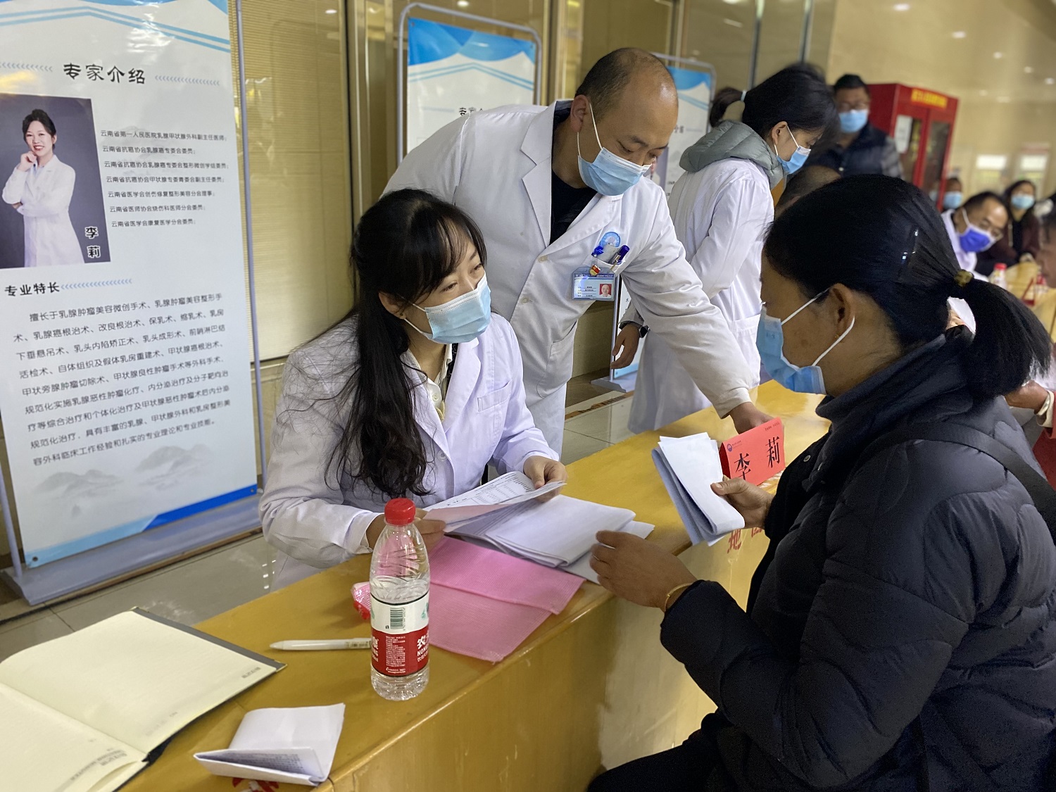 揭牌儀式結(jié)束后,楊昆憲專家團(tuán)隊(duì)在市人民醫(yī)院開展了義診活動(dòng)。義診現(xiàn)場(chǎng)很多市民在排隊(duì)等候,不少患者表示,以前在麗江沒有專門看乳腺、甲狀腺這一方面的專家,這一次他們得知楊昆憲專家團(tuán)隊(duì)來麗江義診的消息,便早早來排隊(duì)等候。