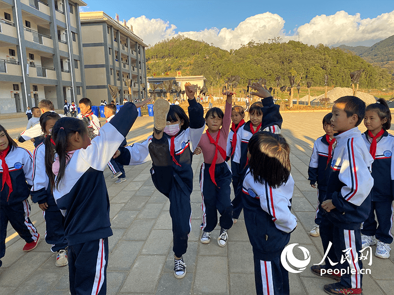 2021年12月1日,孩子們課間在新學校的操場上做游戲。人民網(wǎng) 徐明玥攝