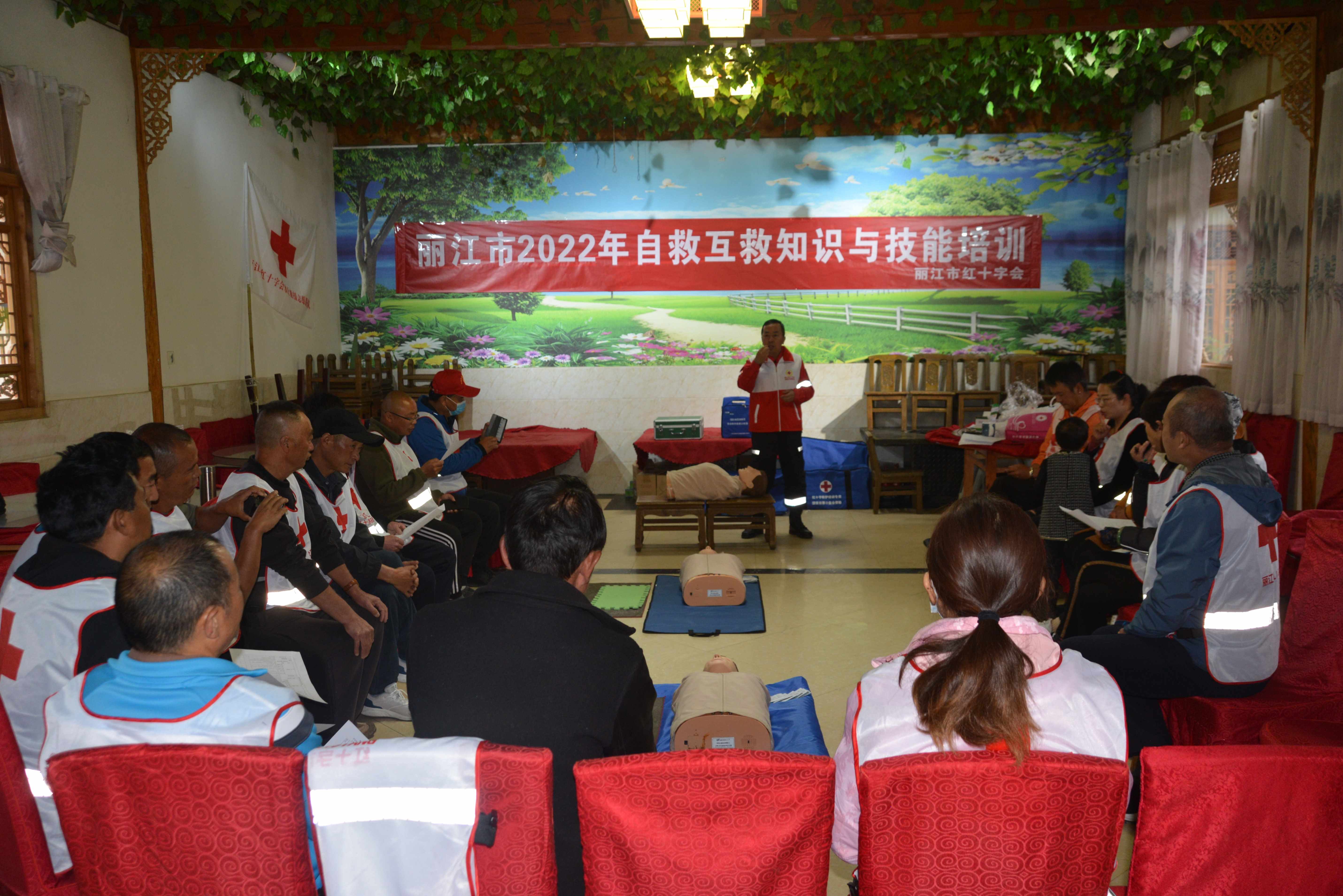 當(dāng)天上午開展的室內(nèi)急救培訓(xùn)上,麗江市紅十字會(huì)應(yīng)急救護(hù)志愿服務(wù)隊(duì)為志愿者們?cè)敿?xì)講解了心肺復(fù)蘇、AED(體外除顫儀)、創(chuàng)傷救護(hù)、海姆立克急救法、排除氣道異物等基本技能,隨后進(jìn)行了心肺復(fù)蘇的實(shí)戰(zhàn)演練。通過親自練習(xí)操作人體模型,讓每一位志愿者基本掌握了胸外心臟按壓、人工呼吸、海姆立克急救法等應(yīng)急救護(hù)知識(shí)。