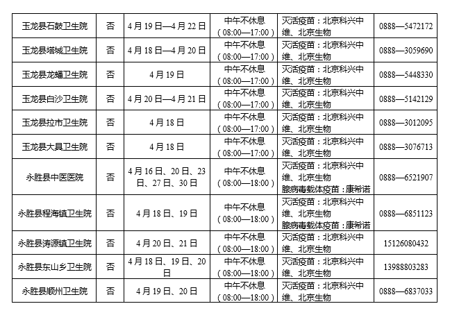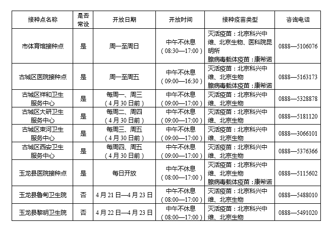 我們整理了近期麗江市新冠病毒疫苗接種點的開放時間,大家可就近就便前往有腺病毒載體疫苗的接種點實施序貫加強免疫。
