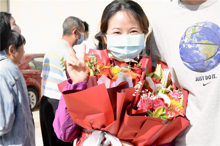 援滬英雄被鮮花、掌聲所包圍。擁抱、話語之間,皆是訴不完的想念、道不完的分享。