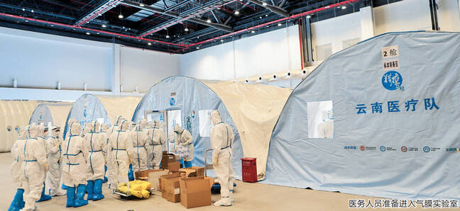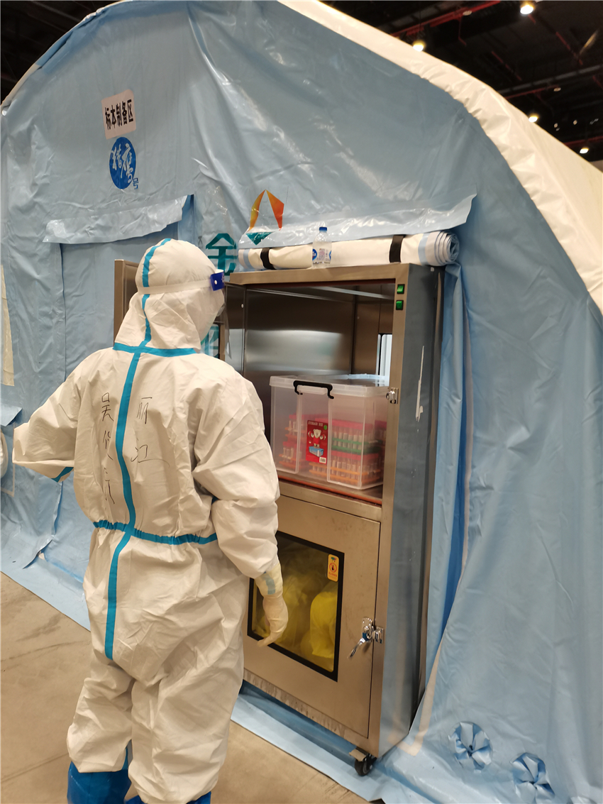 此次助力上海抗擊疫情,云南援滬醫(yī)療隊帶去了整套負壓核酸檢測移動實驗室(簡稱氣膜實驗室)、110臺PCR擴增儀、24臺核酸提取儀等主要核酸檢測設備。而氣膜實驗室主要負責的是核酸檢驗工作,樣本分批送入氣膜實驗室,進行試劑添加、核酸提取、擴增檢測,出具最終結(jié)果,形成標準化、規(guī)范化、自動化核酸檢測流水線,大大提升了檢測效率。
