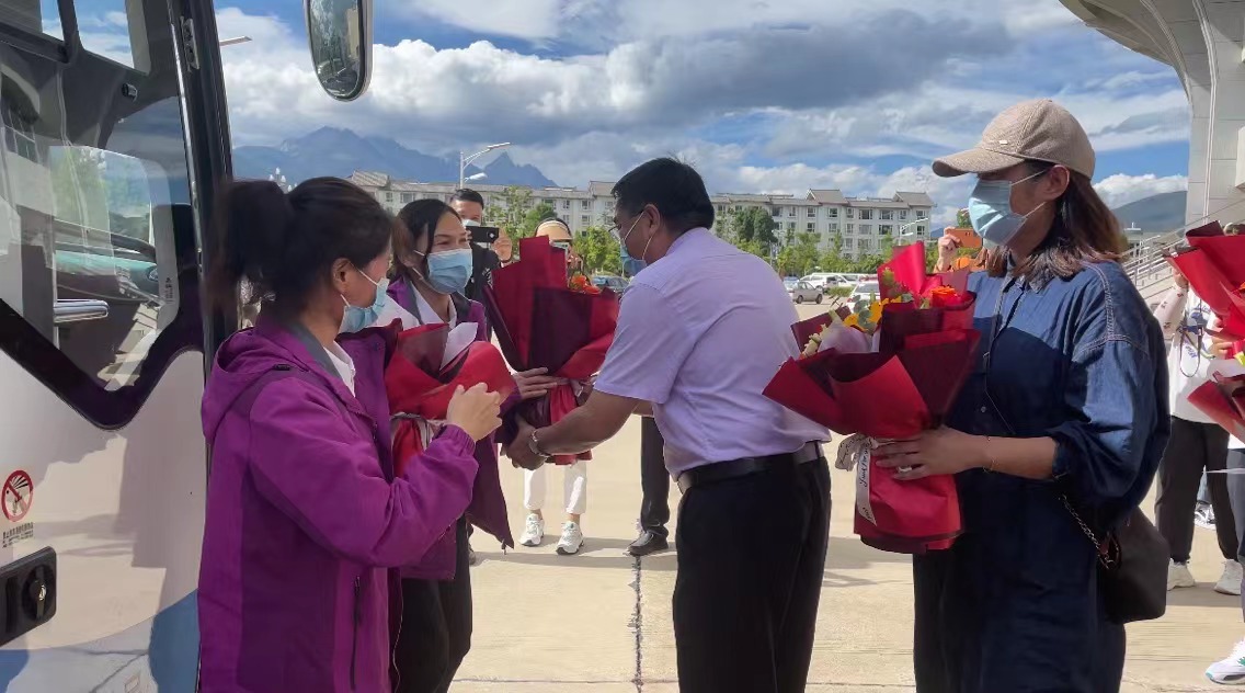 麗江市衛(wèi)健委醫(yī)政醫(yī)管科科長李曉軍表示:“上海疫情十分吃緊的時候,麗江市積極響應省委、省政府的號召,從市級、玉龍縣、永勝縣、華坪縣的醫(yī)療機構(gòu)選派了十名工作人員。于2022年4月4日作為云南省首批援滬醫(yī)療隊員趕赴上海,期間主要負責在上海方艙醫(yī)院的核酸檢測工作,歷時44天。于5月17號返回昆明,然后在昆明進行了14天的集中隔離,今天回到麗江?!?/p>