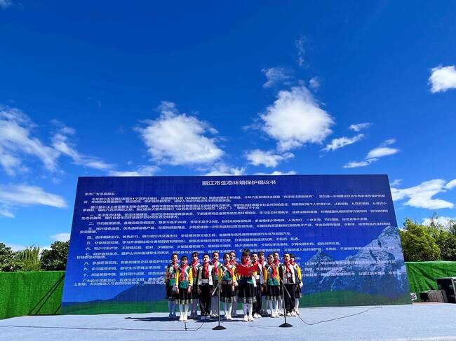啟動儀式上,玉龍縣文筆學(xué)校師生代表宣讀了“麗江市生態(tài)環(huán)境保護(hù)倡議書”,演唱了主題歌《讓中國更美麗》,倡議大家共同踐行《公民生態(tài)環(huán)境行為規(guī)范(試行)》,守護(hù)好麗江的綠水青山,保護(hù)好我們共同的家園。