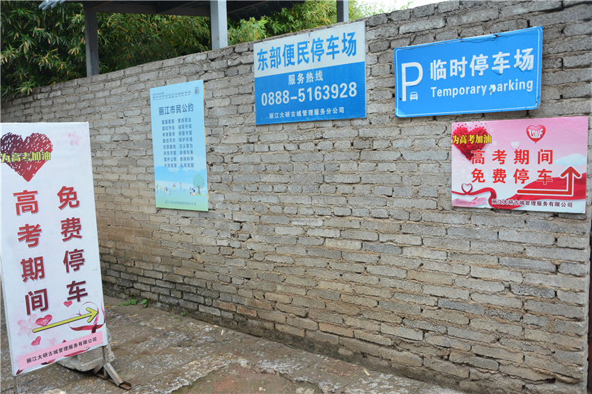 高考期間,像古城區(qū)一中考點周邊停車場、麗江市一中考點附近的東部便民停車場,優(yōu)先為送考車輛提供免費停放服務(wù),并在路邊粘貼提示牌,引導(dǎo)車輛停放。