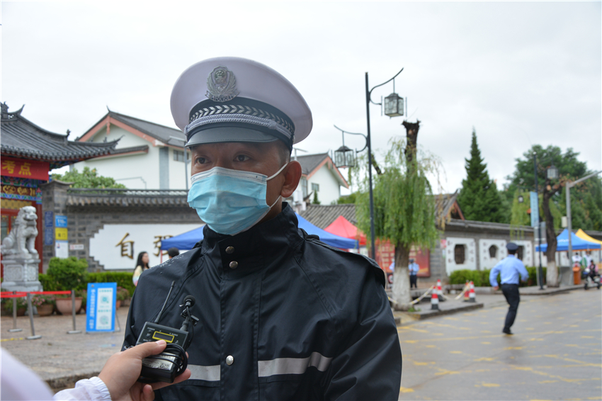 在麗江市一中考點,考場內(nèi)外,在校門口和每一個交通路口,都有很多公安交警在維護現(xiàn)場秩序,護航高考。當有車輛經(jīng)過考點附近時,交警會提醒車輛不要鳴笛、緩速慢行,保障考生及送考車輛通行順暢。古城區(qū)交警大隊民警表示,這幾天為了方便考生和送考車輛,在各個考點周邊都安排了警力現(xiàn)場指揮交通。