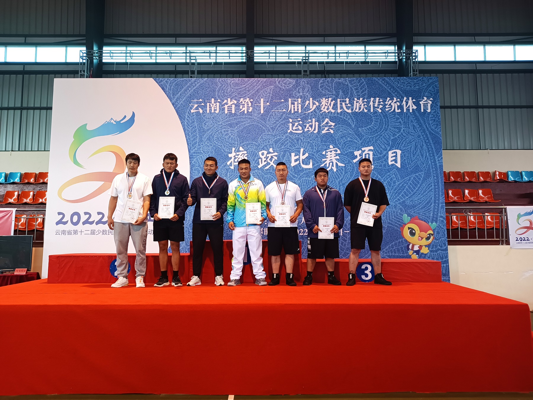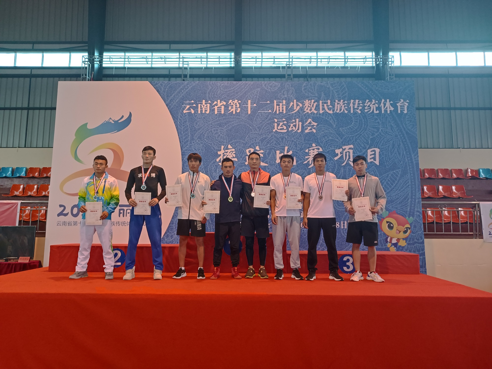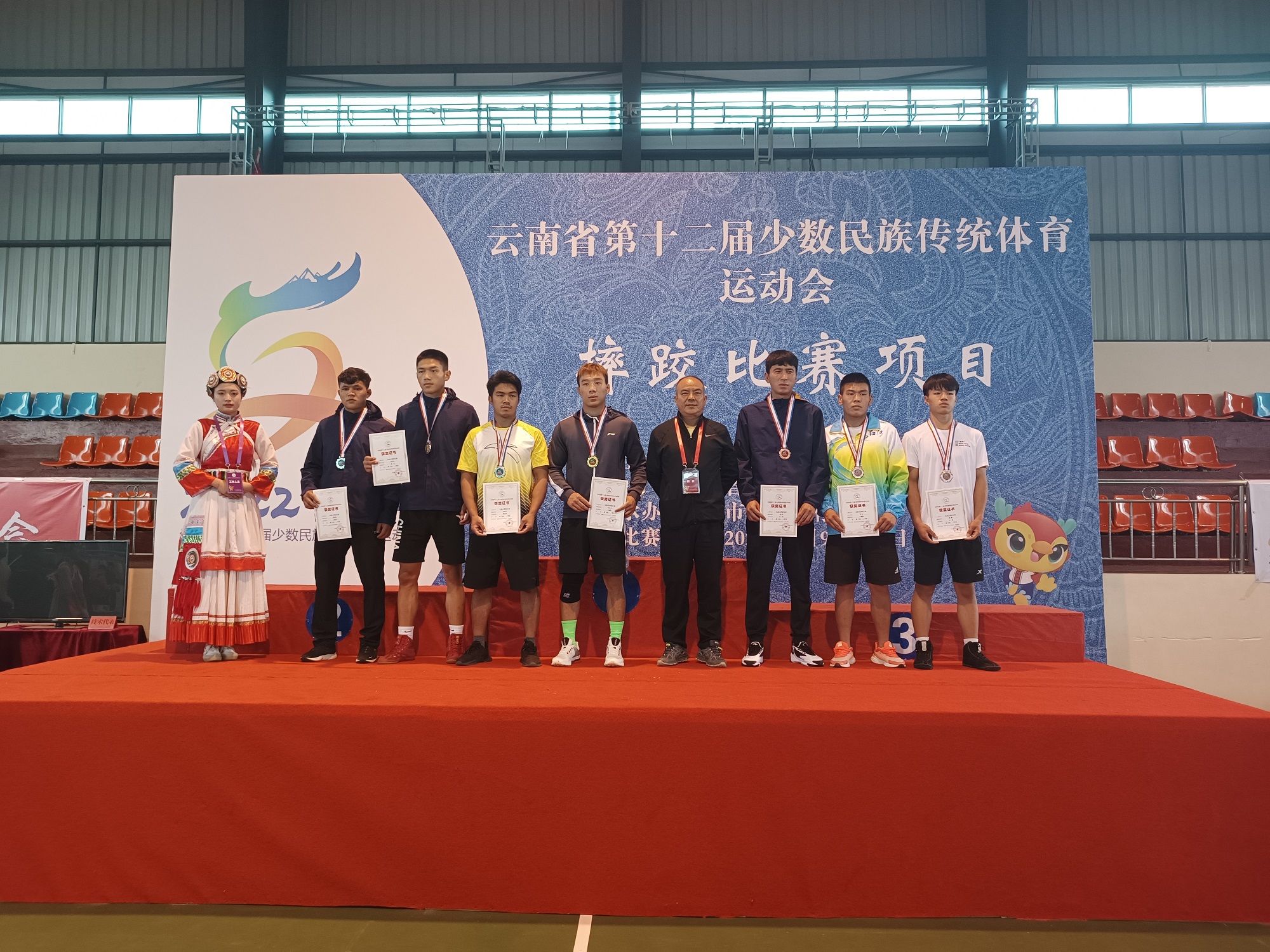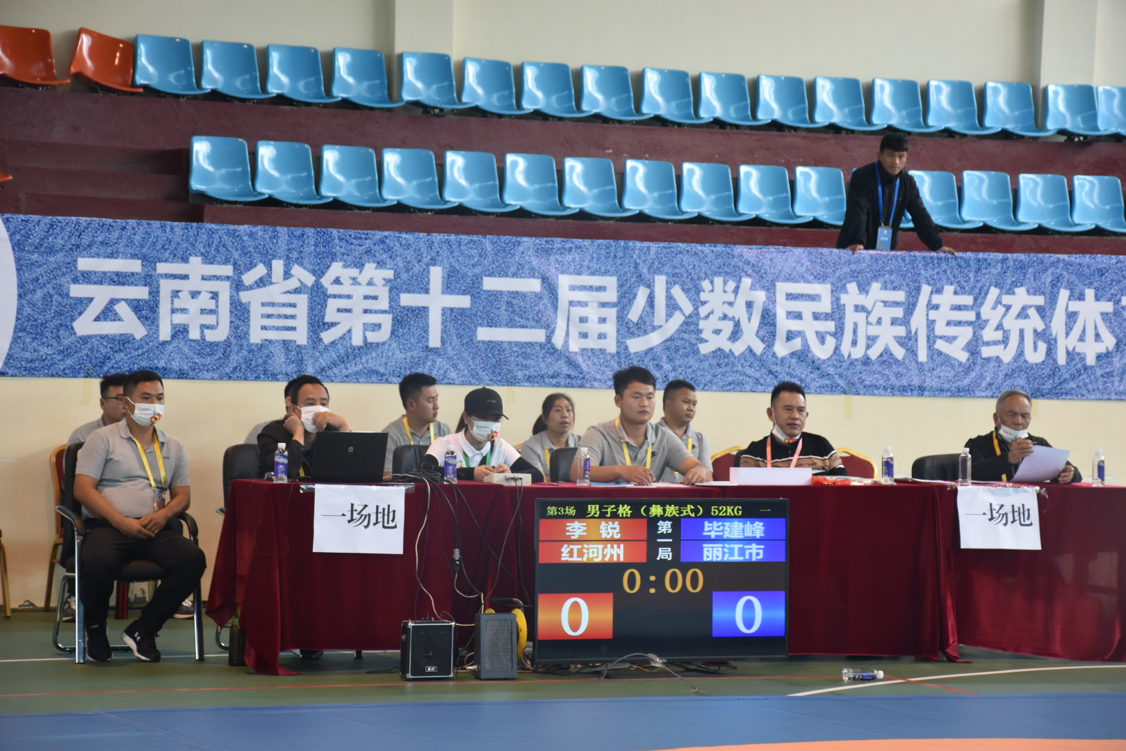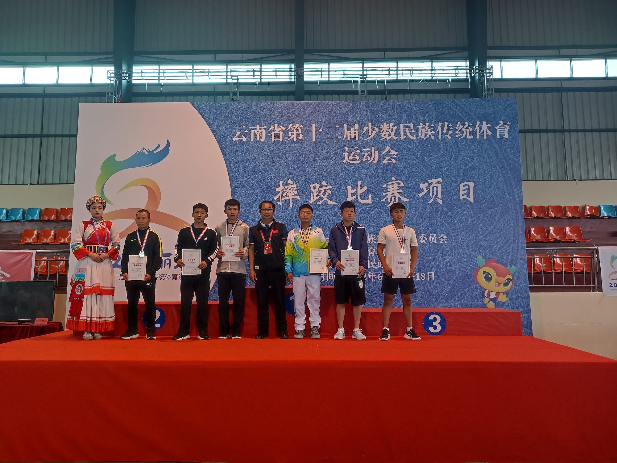 6月13日,云南省第十二屆少數(shù)民族傳統(tǒng)體育運動會民族式摔跤比賽正式開賽,當(dāng)天進(jìn)行了格(彝族式摔跤)52kg、62kg、74kg、87kg單項比賽,共八個代表隊參加比賽。