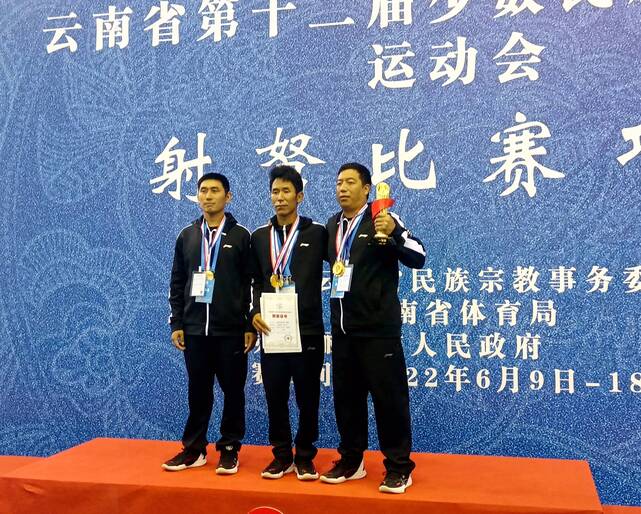 同樣是上午進行的民族傳統(tǒng)弩男子個人全能賽中,來自怒江隊的三名傈僳族隊員表現(xiàn)耀眼,包攬了此項比賽的前三名,分別是第一名的鄧前發(fā)、第二名的迪路堆和第三名的胡玉華。怒江隊也依靠他們?nèi)说某錾l(fā)揮,一舉拿下了民族傳統(tǒng)弩男子團體冠軍,第二三名分別由迪慶代表隊和文山代表隊獲得。