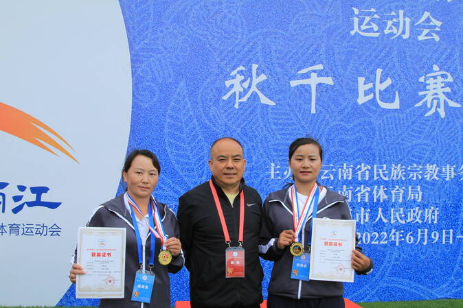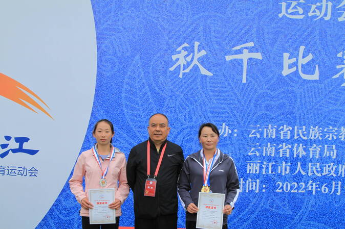 在另一邊的賽場上,上午進行的女子秋千55KG級單人觸鈴比賽中,來自楚雄代表隊的楊紅英以總觸鈴30次的成績奪得冠軍,來自曲靖代表隊的施露瑤位居第二;女子秋千55KG以上級單人觸鈴比賽中,同樣來自楚雄代表隊的畢永麗以總觸鈴65次奪得桂冠,來自曲靖代表隊的和珊獲得第二名。