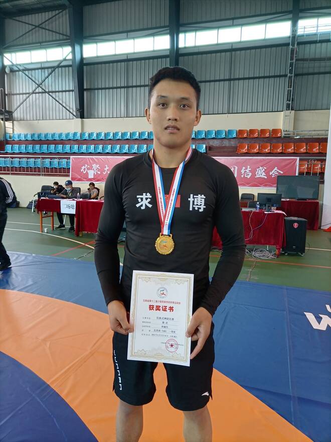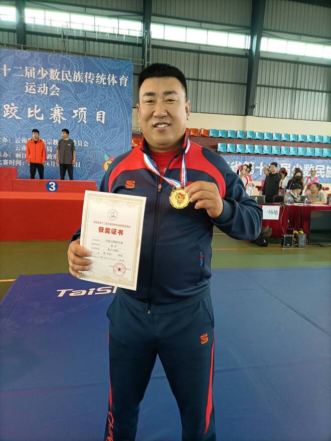 民族式摔跤(且里西)52KG冠軍獲得者是文山代表隊的王志峰,第二名獲得者是紅河州代表隊的李銳,第三名獲獎者則是曲靖代表隊的鵬元璋;
