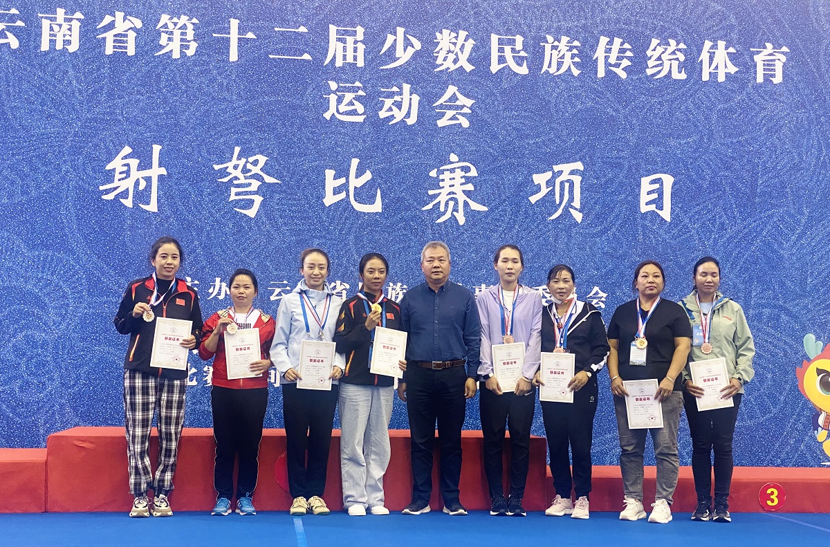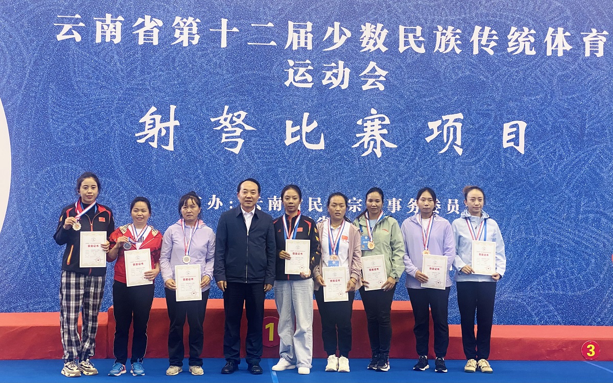 在女子民族標準弩女子比賽中,普洱市羅成書獲得第一名,普洱市標張獲得第二名,文山州侯云麗獲得第三名。