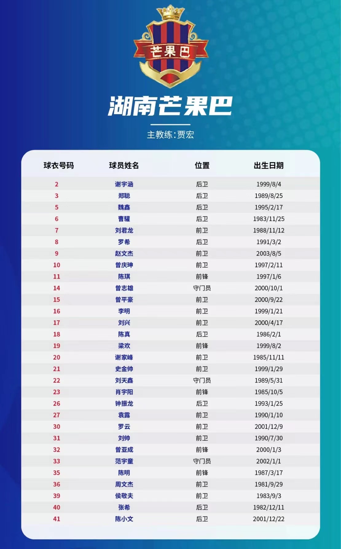 湖南廣電芒果巴足球隊,于2015年在湖南長沙成立,是湘超聯(lián)賽的一支勁旅,并在2021年湘超聯(lián)賽中獲得第三名,從而獲取中冠聯(lián)賽參賽資格,這也是球隊第一次參加中冠聯(lián)賽。