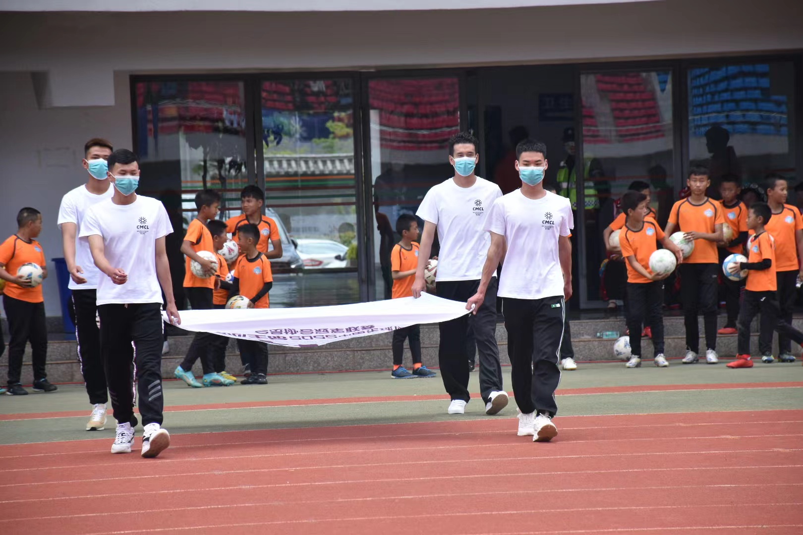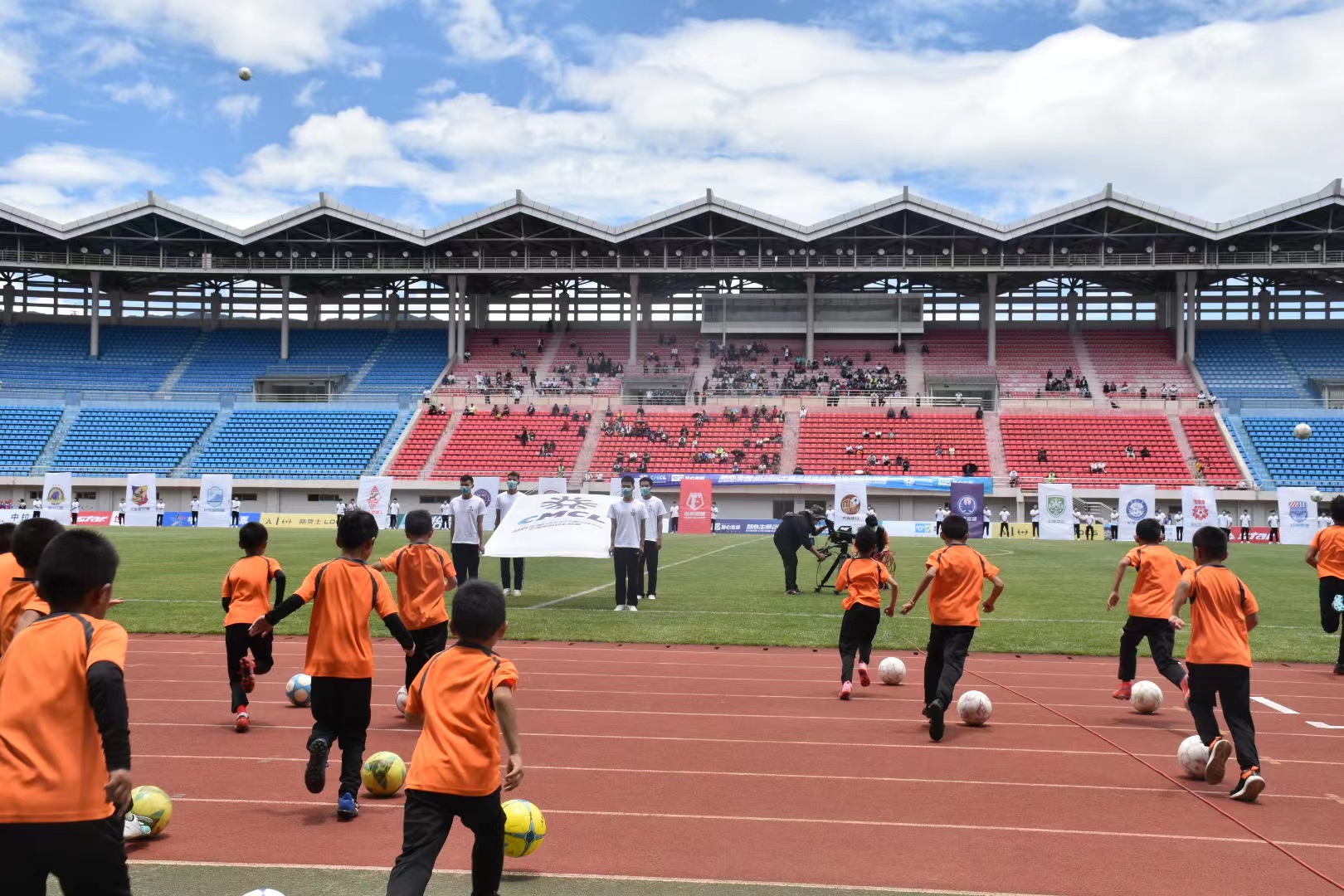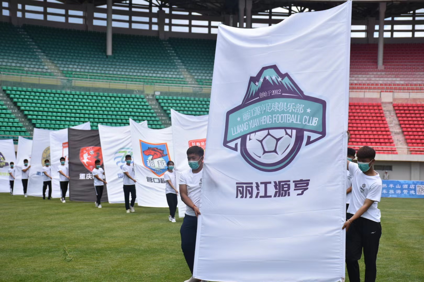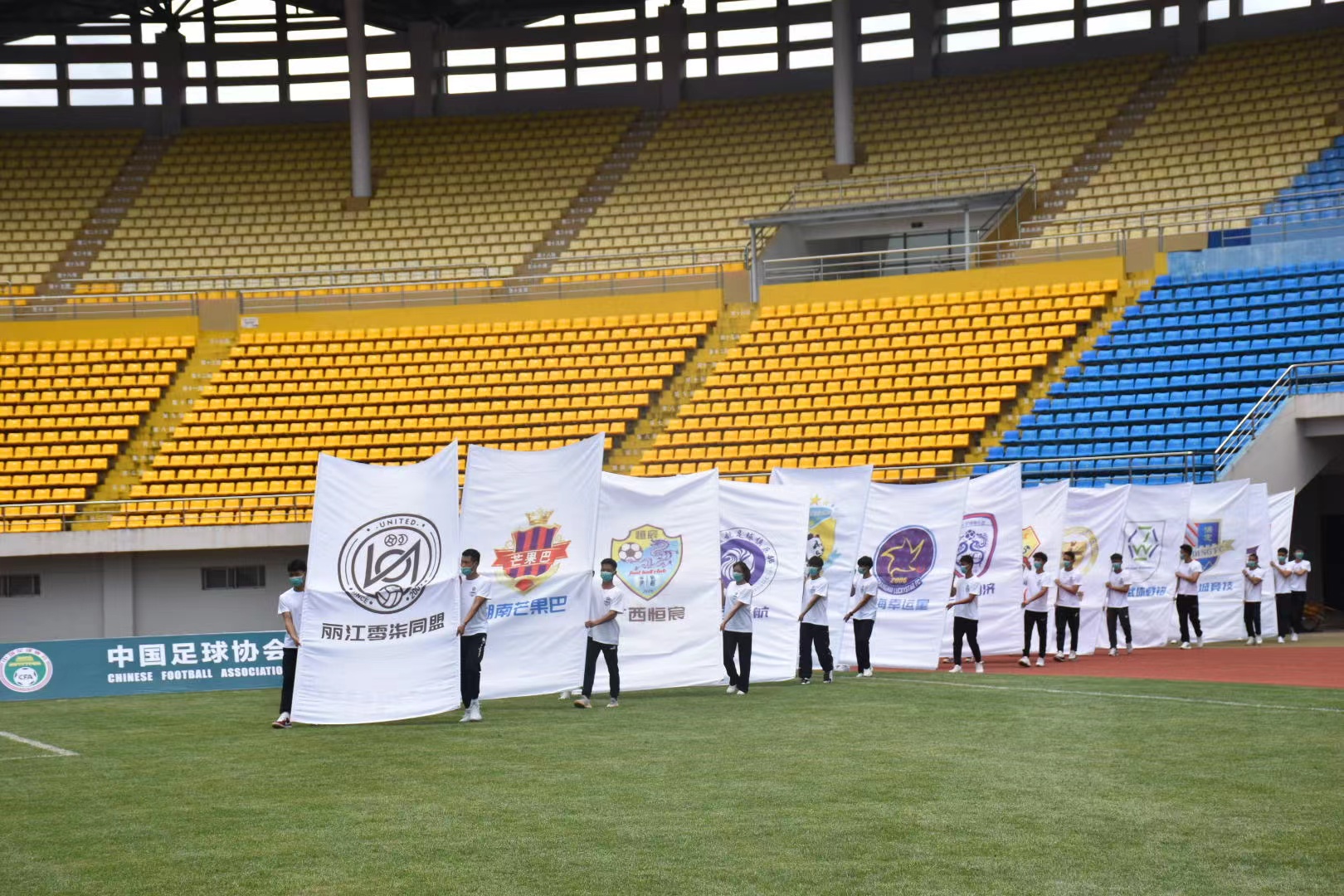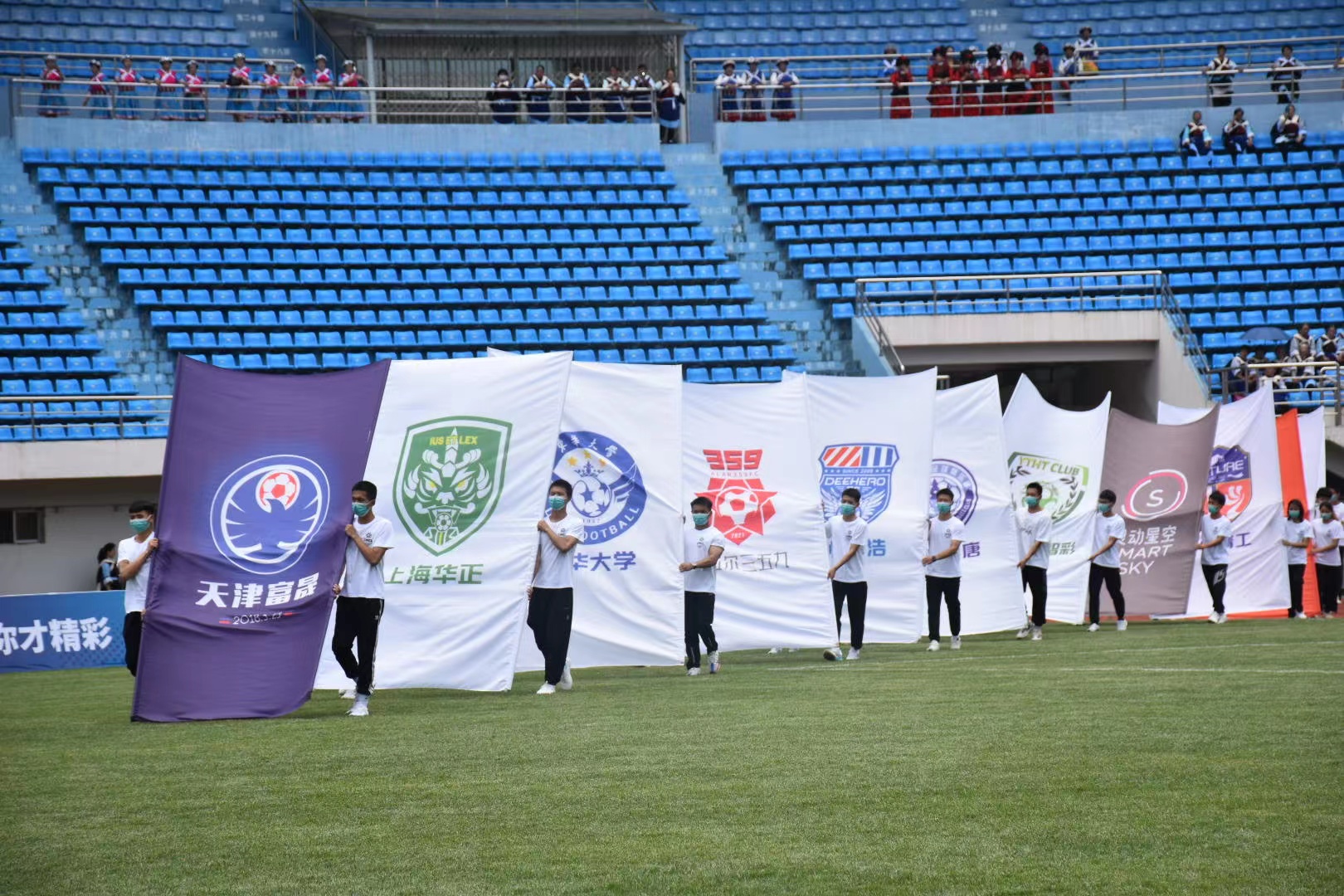 開幕式伊始,中冠聯賽會旗和56支參賽球隊隊旗依次進入球場,寓意著在新的賽季里,56支球隊和中冠聯賽休戚與共、緊密相連。