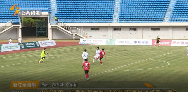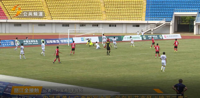 第44分鐘,廣西恒宸打入禁區(qū),米爾扎艾克拜迎球射門,“梅開二度”,比分3:0。