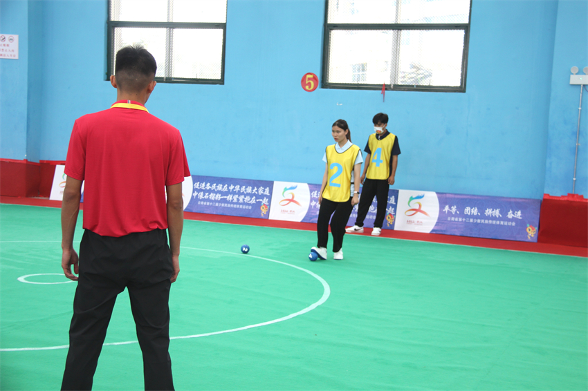 云南省第十二屆少數(shù)民族傳統(tǒng)體育運動會分三個階段進(jìn)行,6月12日,第一階段的比賽拉開序幕,設(shè)有民族式摔跤、射弩、吹槍、陀螺和秋千等5個比賽項目,共14個代表團(tuán)343名運動員參加。6月17日,第 一階段所有賽事圓滿收官。