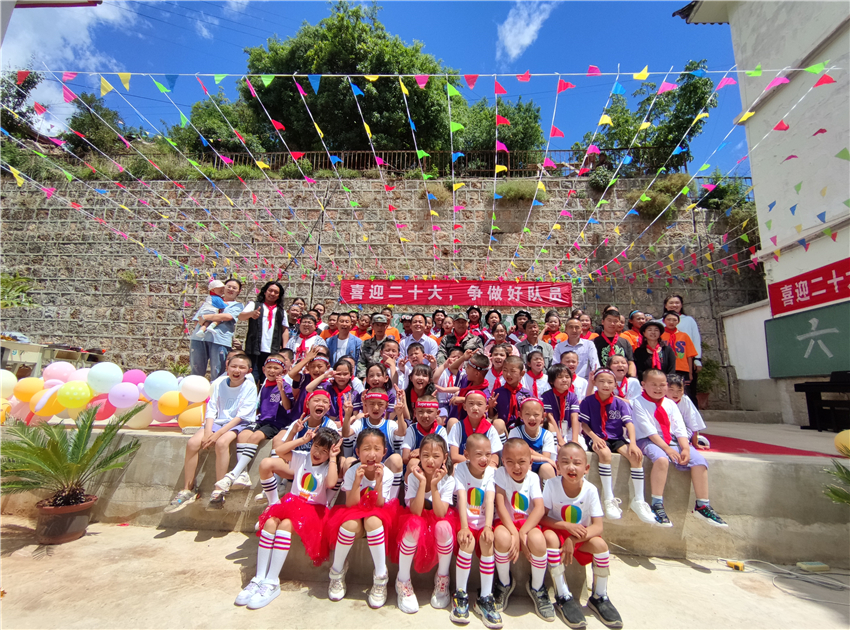 在畢業(yè)儀式上,他們擁有了人生當(dāng)中第一張畢業(yè)照,全校9名課任老師全員到場(chǎng),語(yǔ)文、品德、科學(xué)、英語(yǔ)老師和校長(zhǎng),9個(gè)老師將他們簇?fù)碓谥虚g,和他們一起留下在白水完小朝夕相處六年后的紀(jì)念。