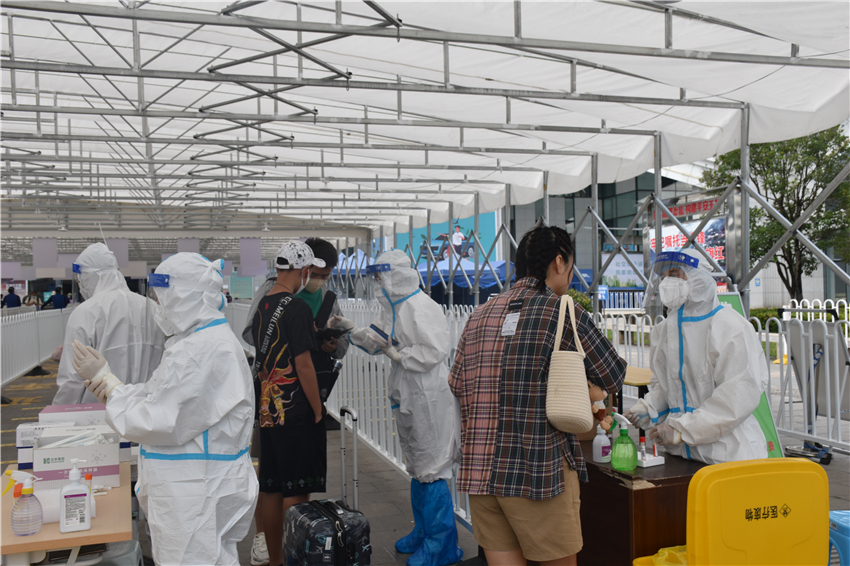 8月24日,記者到麗江火車站核酸檢測點走訪。據(jù)了解,目前麗江火車站采取的是出站人員落地全員核酸免費檢測。近期客流量有所回落,每天火車站核酸檢測點采樣量都在6000份左右。