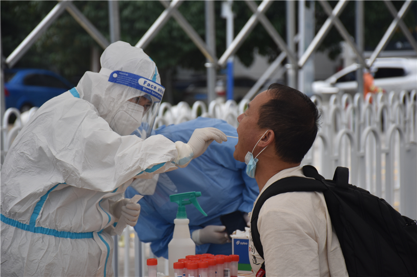 醫(yī)護人員提醒,在采集完成后立即離開采集點,避免在采集點周圍吐痰、嘔吐。檢測前后均需要注意手部衛(wèi)生,可使用免洗手消毒液或免洗酒精、消毒棉片等擦拭雙手。采樣結(jié)束,一定要立即戴好口罩并迅速離開,回家后立即用流動水洗手,摘下口罩丟棄。希望廣大市民積極配合,服從醫(yī)務(wù)人員人員管理,安全、及時、有序參加核酸檢測。