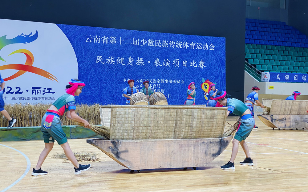 在競(jìng)技類項(xiàng)目中,迪慶代表隊(duì)的《裹過(guò)》獲得第一名;曲靖代表隊(duì)的《打磨秋》獲得第二名;楚雄代表隊(duì)的《豐收賽》獲得第三名。