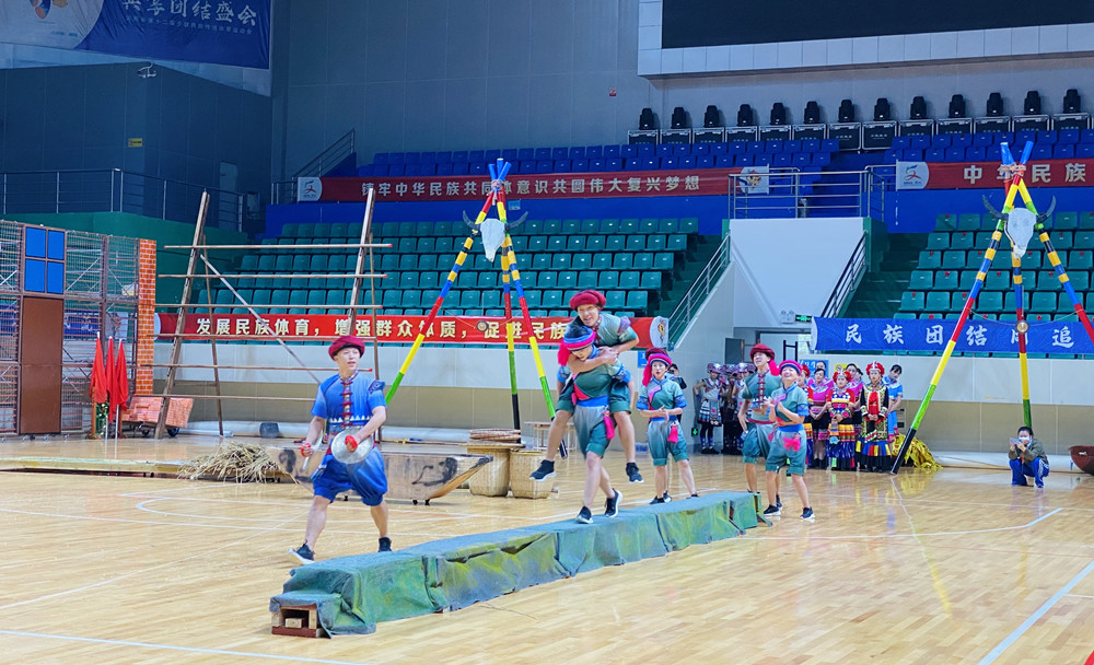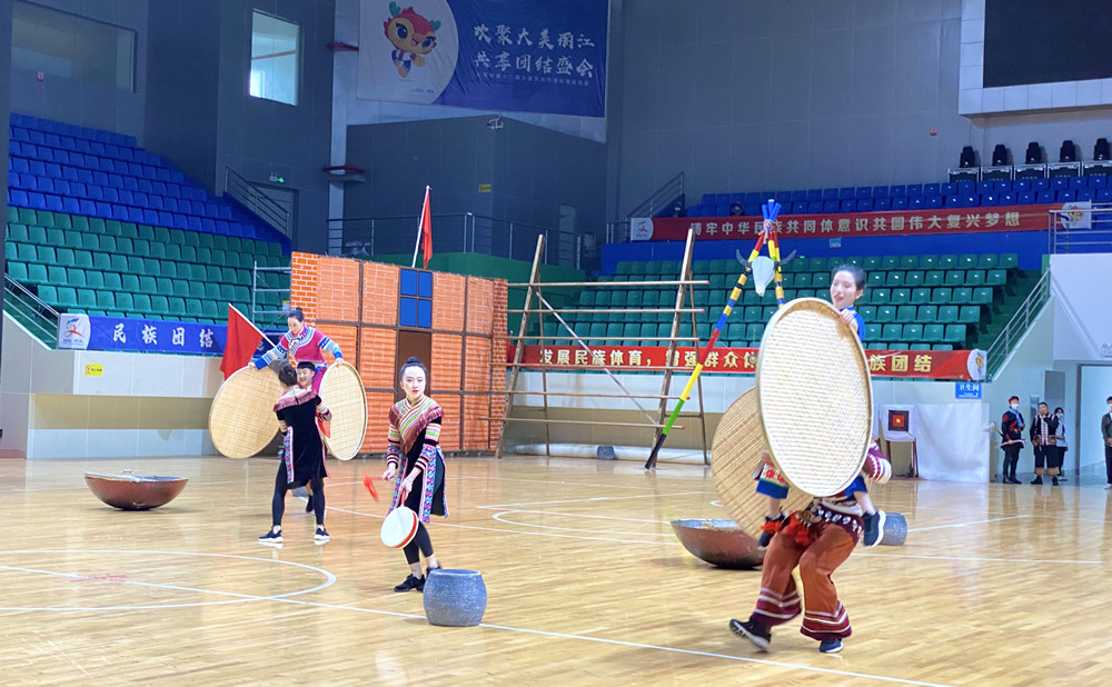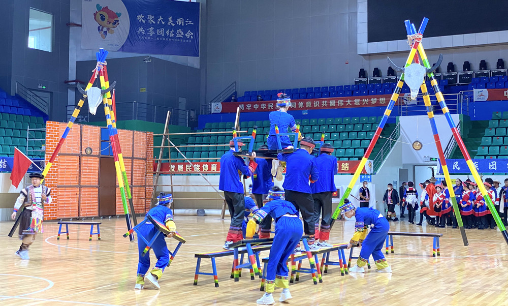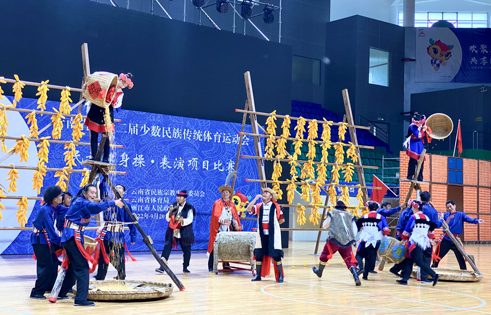 本屆民族運(yùn)動(dòng)會(huì)表演項(xiàng)目分為技巧類、綜合類、競(jìng)技類和開(kāi)幕式駐停表演4類,各代表隊(duì)圍繞本地區(qū)民族傳統(tǒng)、生產(chǎn)、生活等內(nèi)容進(jìn)行編排,展演具有地域和民族特色的參賽節(jié)目,充分展示云南省各地多姿多彩的民族文化。表演項(xiàng)目作為民族運(yùn)動(dòng)會(huì)最具看點(diǎn)和最受歡迎的特色項(xiàng)目之一,為各族群眾展示生產(chǎn)生活真實(shí)場(chǎng)景和民族特色體育運(yùn)動(dòng)提供了舞臺(tái),有力推動(dòng)民族民間傳統(tǒng)文化在現(xiàn)代社會(huì)的傳承和發(fā)展。