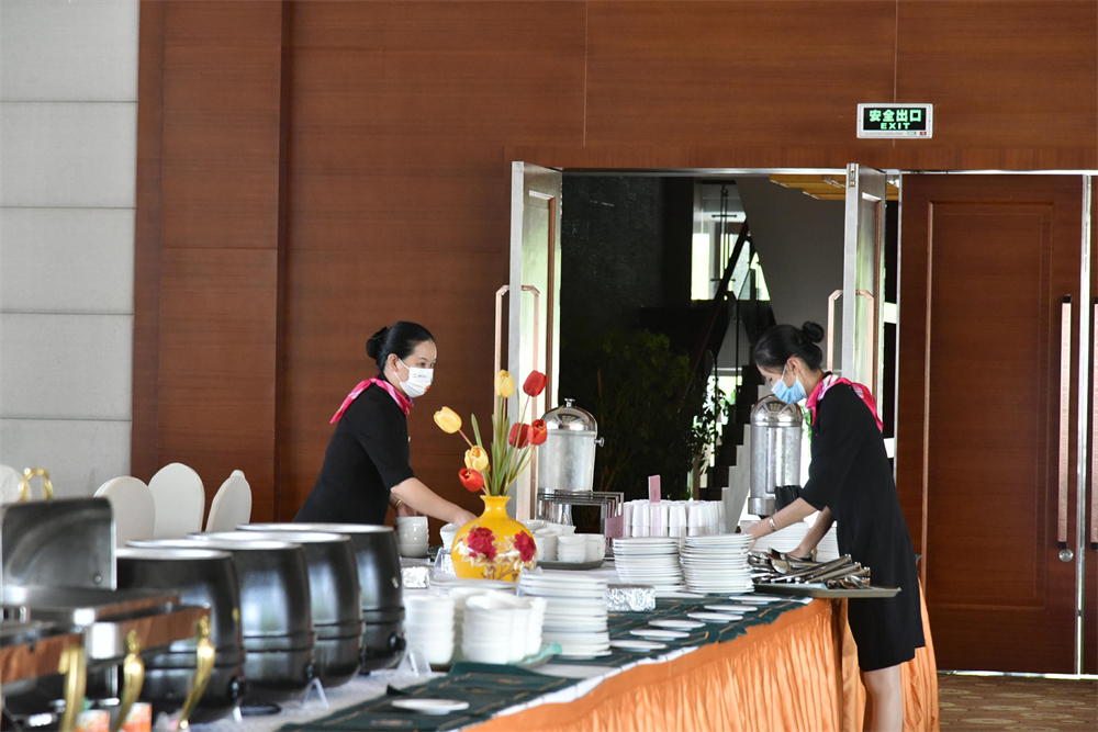 在本次入住麗江官房大酒店花園別墅,餐廳廚師、服務(wù)員們正在緊張有序地為嘉賓運(yùn)動員們備餐。“我們餐廳在賽前一個(gè)月就進(jìn)行了員工的培訓(xùn)和選拔,挑選出最優(yōu)秀的團(tuán)隊(duì)來做服務(wù)。餐廳每天都有40多個(gè)菜品,做到葷素搭配,還有水果、飲品等等,還提供清真餐,滿足不同運(yùn)動員的需求。同時(shí)做到嚴(yán)格的餐具、用餐區(qū)消毒消殺,做好餐布、口布的‘一客一換’,保證用餐環(huán)境的衛(wèi)生舒適。”餐廳經(jīng)理李玉芳介紹道。