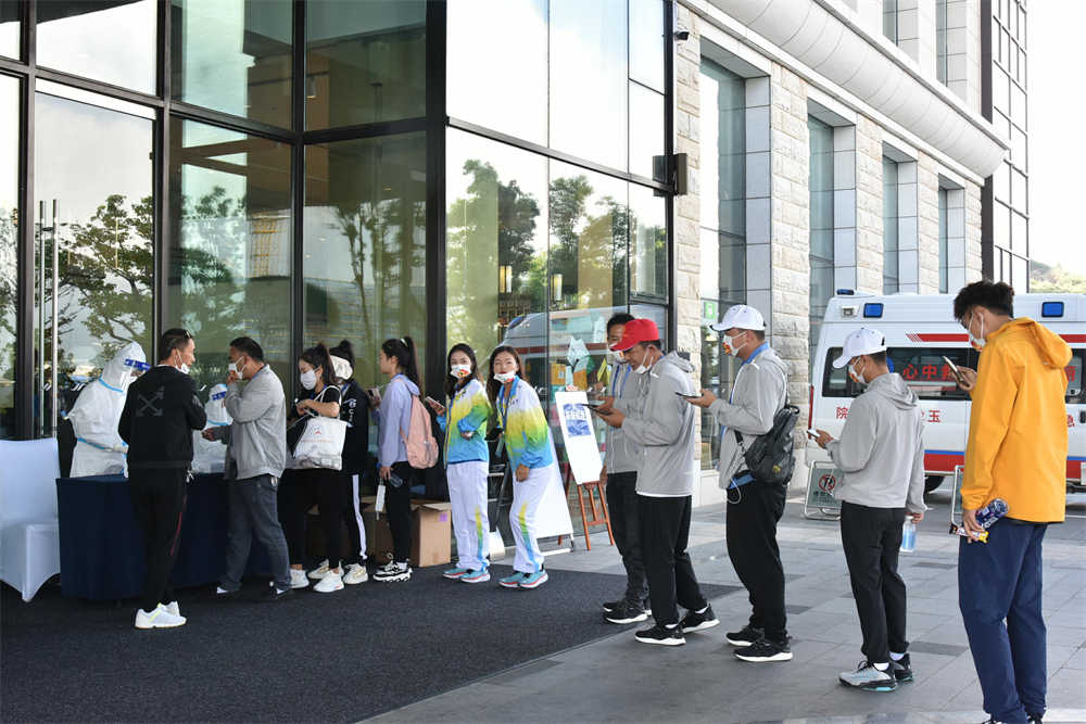 “我們?nèi)胱〉倪\(yùn)動員很多,但我感覺酒店在衛(wèi)生、后勤、飲食等方面都保障得很好,沒有說因?yàn)槿硕嗑徒档头?wù)標(biāo)準(zhǔn)。還有隨車的志愿者,每天都在幫我們測體溫發(fā)消毒液,全程跟,很負(fù)責(zé)。那些醫(yī)療安保人員也是為了我們一直堅(jiān)守崗位,睡得比我們晚,起得比我們早。在此我也想表示敬意,感謝所有工作人員的付出?!眮碜云斩写黻?duì)的運(yùn)動員普旭東說。