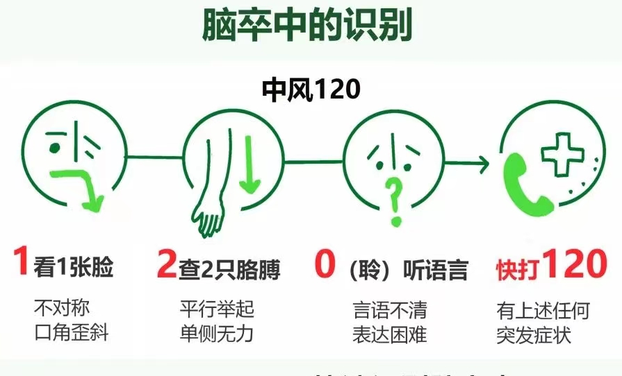 患者及家屬也可以根據(jù)“中風120”“FAS口訣”識別腦卒中早期癥狀簡便有效。